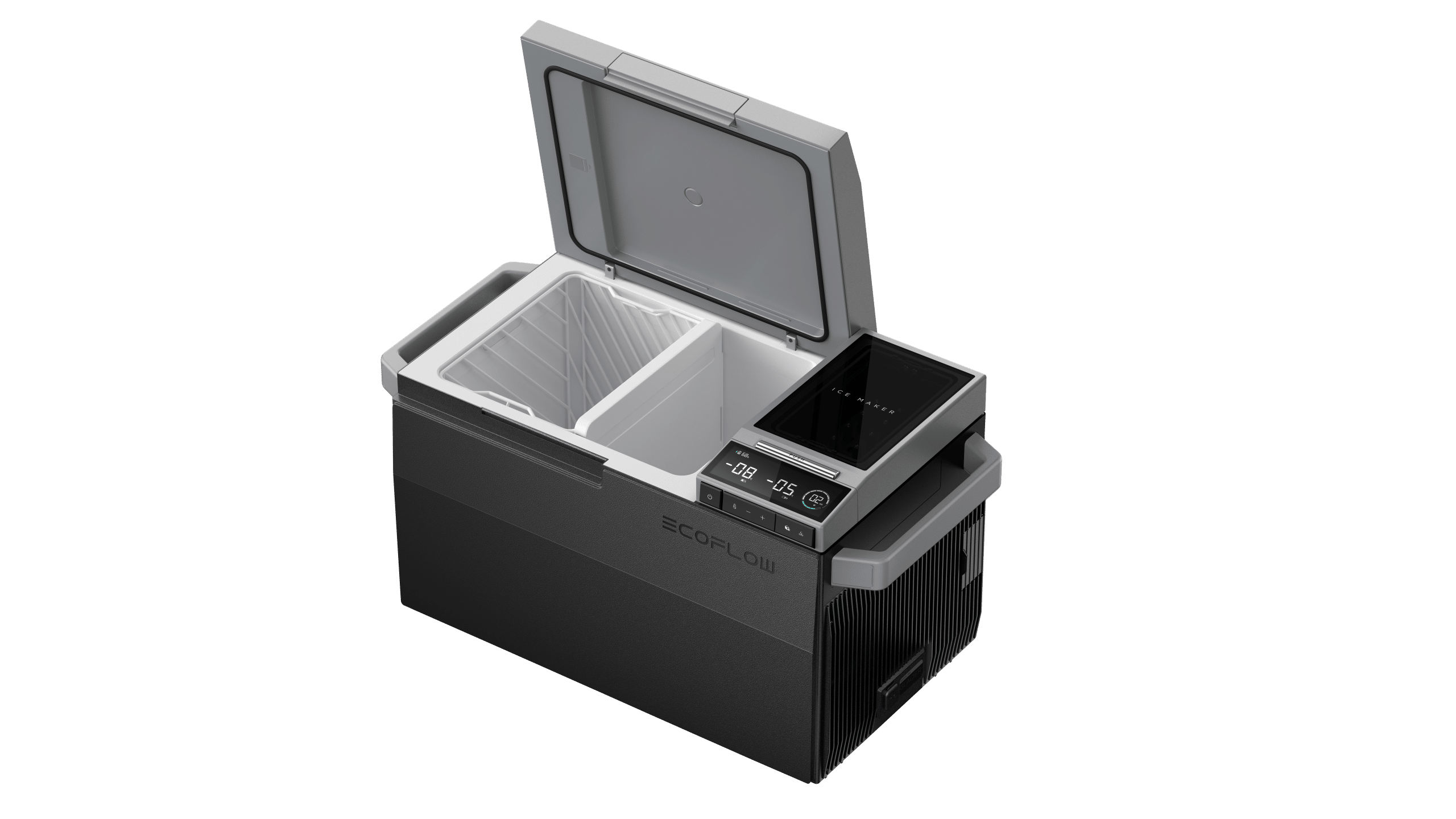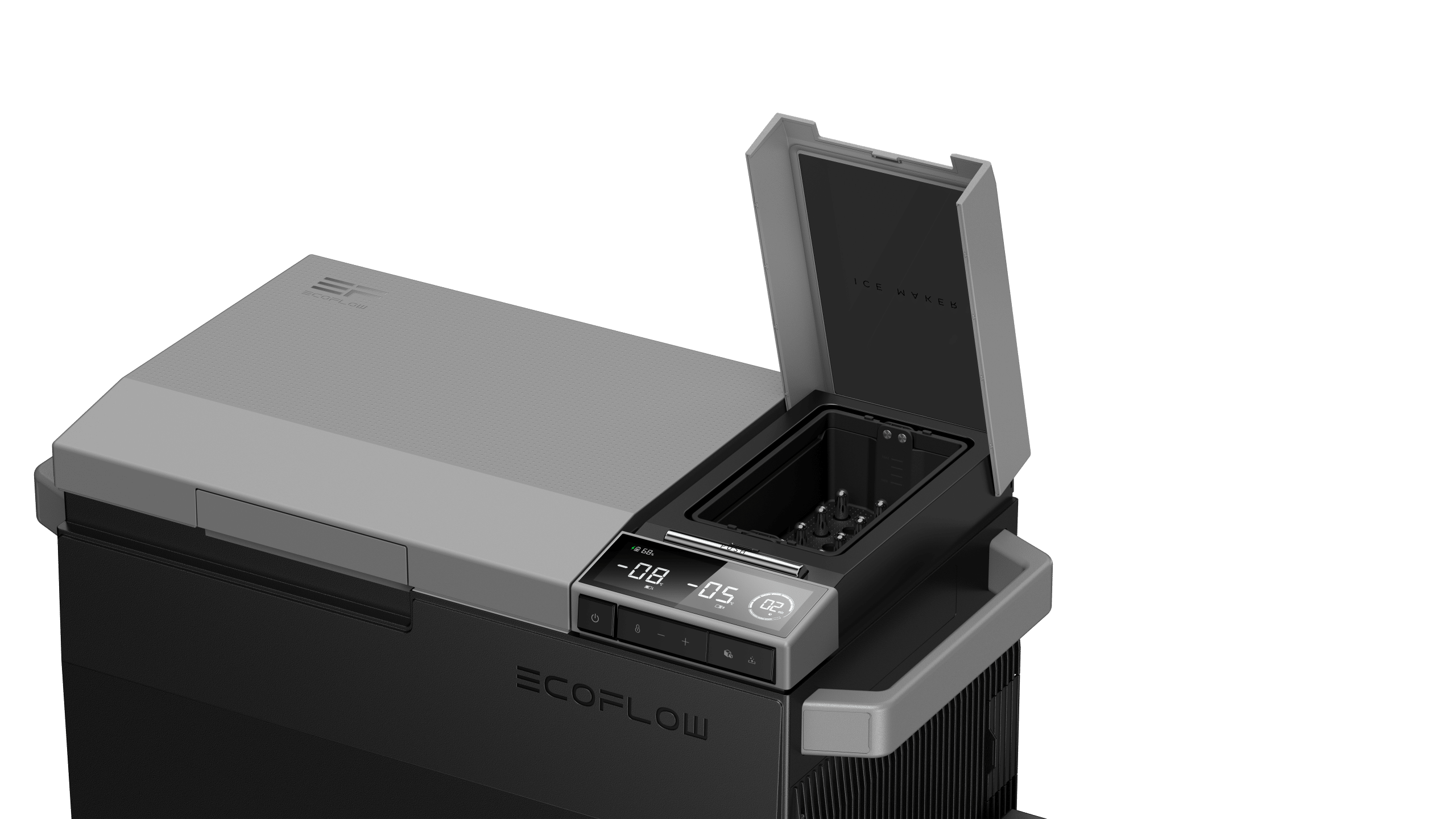 Ecoflow Glacier er utstyrt med en 120W kompressor som driftes på 230V, 12V eller på batteri (kjøpes separat)